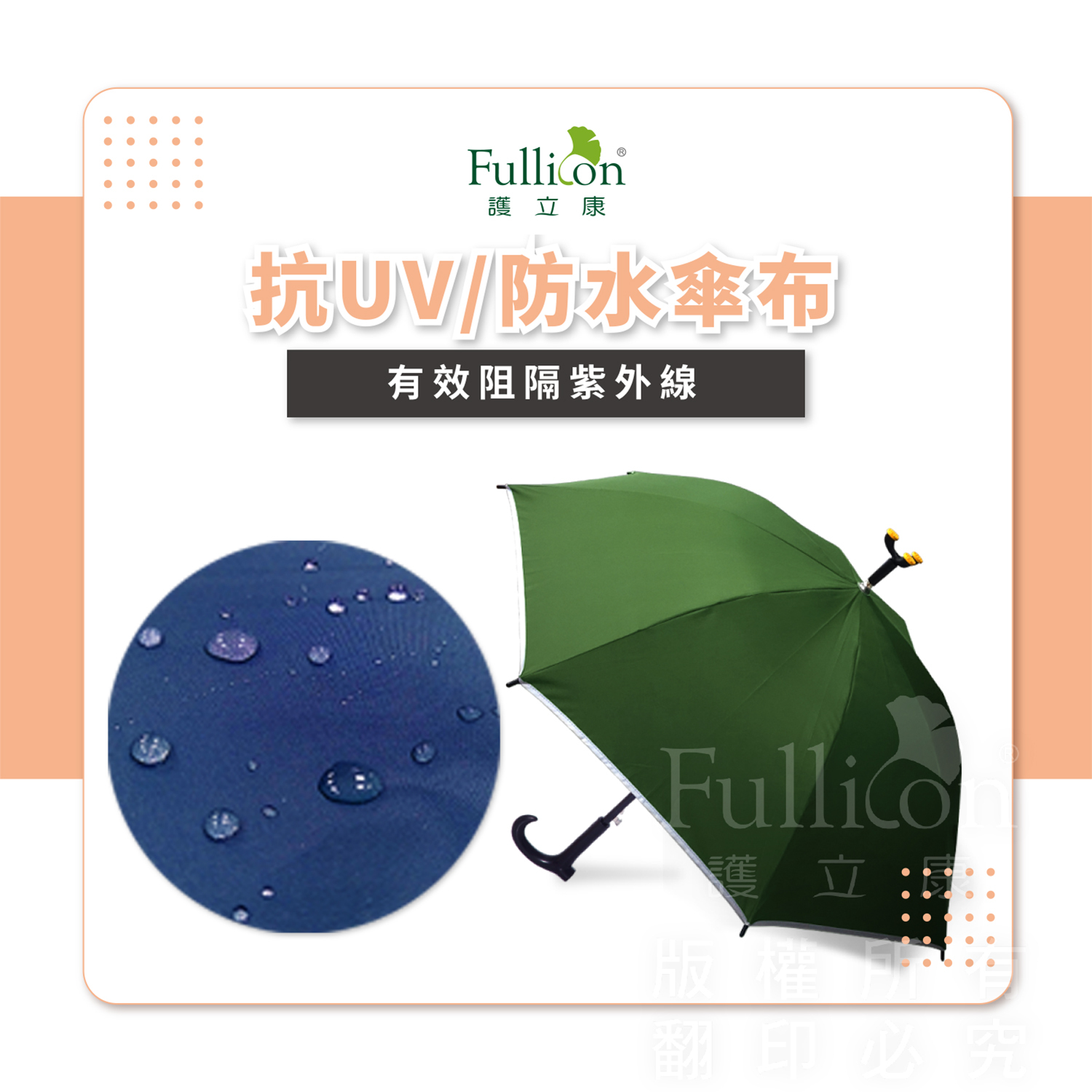 🟢材質:防潑水傘布.玻璃纖維傘骨.鐵製支架.ABS握把