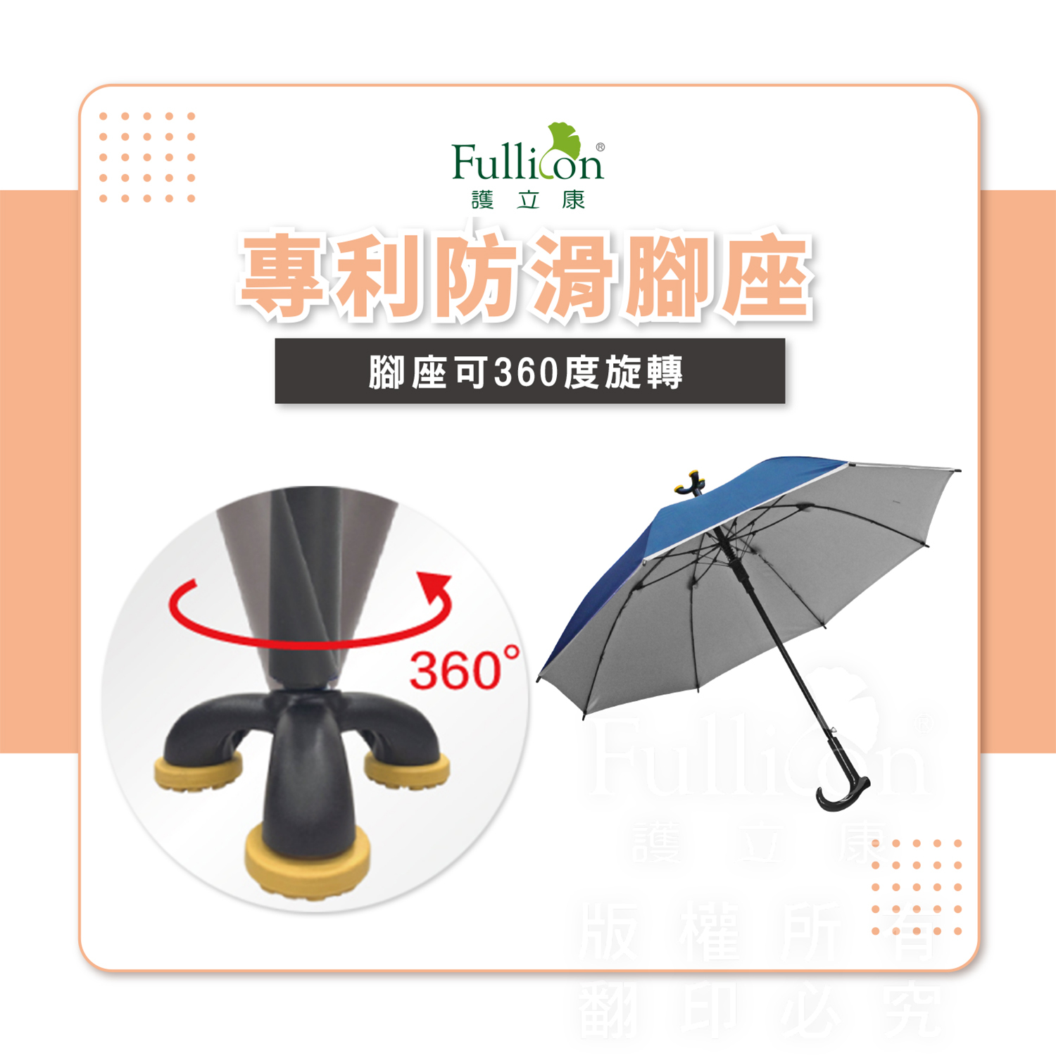🟢專利防滑腳墊,安全性為一般雨傘2.5倍